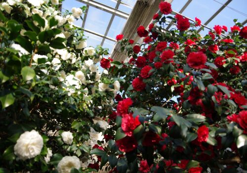 Etwa zwischen Mitte Januar und Mitte April kann man die Kamelienblüte in unterschiedlichen Stadien bis hin zu einem einzigartigen Blütenmeer bewundern – umrahmt vom zarten Flair der Duftkamelien. Tausende Besucher aus allen Teilen Deutschlands genießen jedes Jahr diesen einmaligen Blütenzauber.